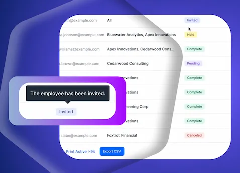Track every I-9 in real-time across teams and locations with full audit trails and guided, compliant workflows—no complex setup required.